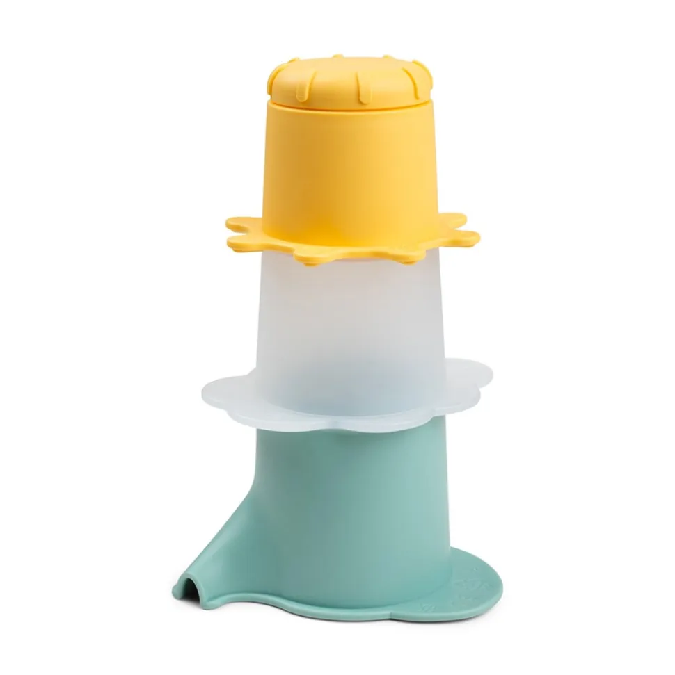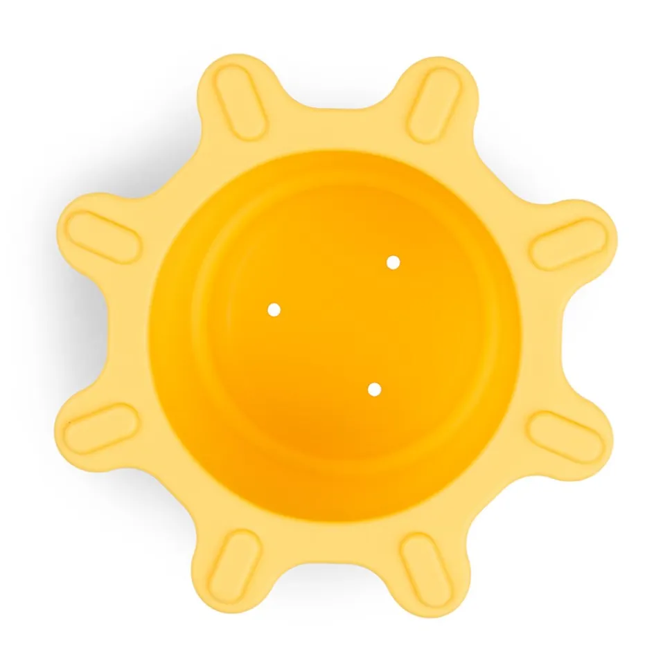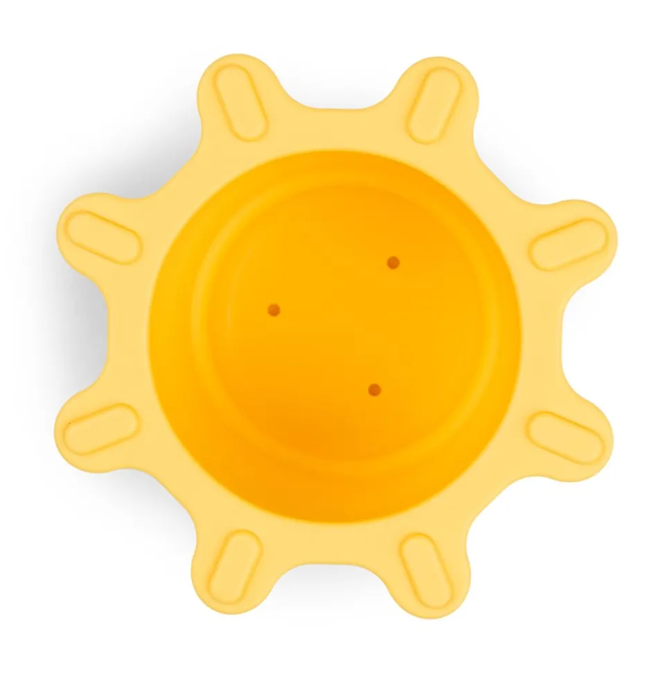 - En gul sol-formet kop med åbne- og lukkefunktion