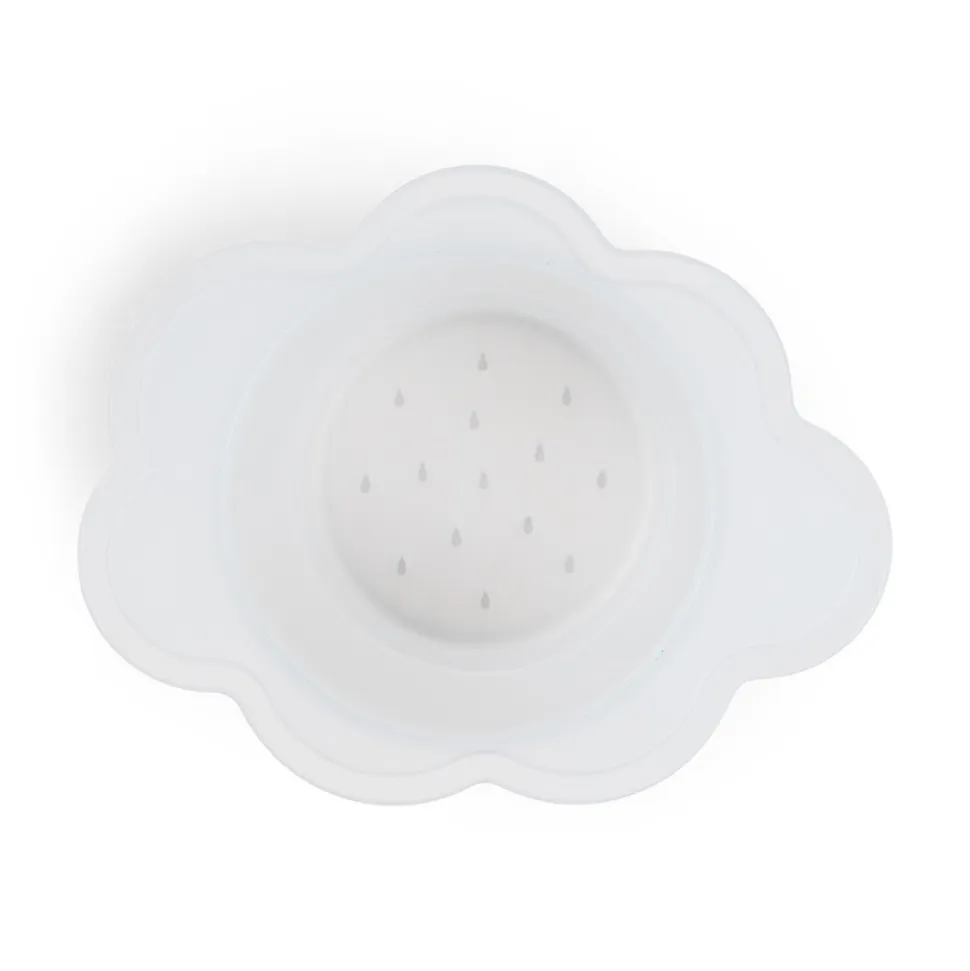 - En halvgennemsigtig hvid sky-formet kop med huller i bunden