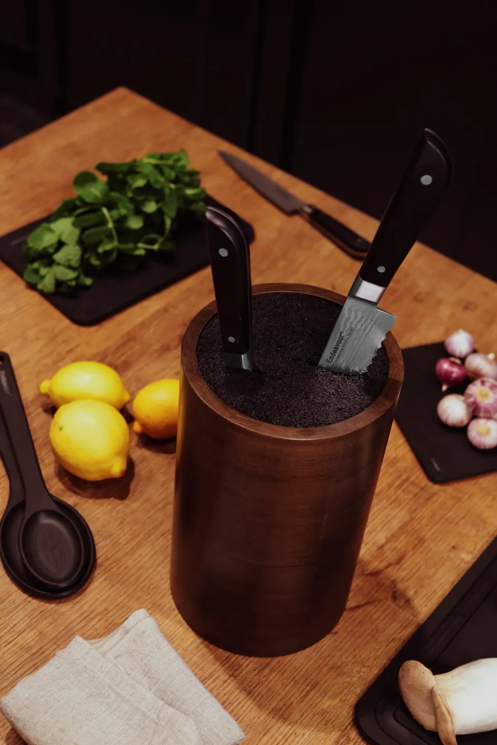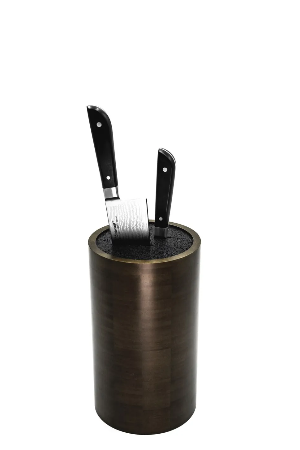 Endeavours knivholder skiller sig ud, med sin enestående unikhed, ofte imiteret, men aldrig gentaget. Udformet til at give knive holdbar beskyttelse og samtidig optimere pladsen. Designet har bestået tidens prøve, i næsten to årtier. Og har udviklet sig til en moderne klassiker, der pryder køkkener hos både professionelle og hverdagshusholdninger verden over. Selvom der findes efterligninger af vores ikoniske design, skal du ikke lede længere end Endeavours knivholder, for den autentiske original.