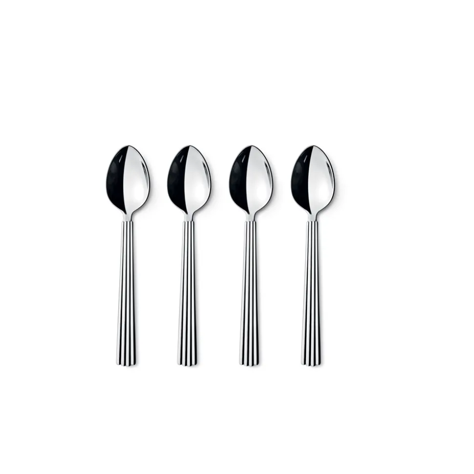 Introducer dit hjem til tidløs elegance med Bernadotte teskeen fra Georg Jensen. Dette sæt består af fire teskeer, der kombinerer funktionalitet med et klassisk design. Bernadotte teskeen er kendt for sit distinkte rillede skaft, som giver et elegant og raffineret udtryk, der klæder ethvert teselskab eller kaffebord.Teskeen er udført i rustfrit stål, hvilket sikrer både holdbarhed og en smuk, skinnende finish. Det rustfri stål gør desuden, at skeerne er lette at vedligeholde og tåler daglig brug uden at miste deres glans. Hver detalje i disse skeer afspejler Georg Jensens dedikation til kvalitet og stil, hvilket gør dem til et fremragende valg for enhver, der værdsætter både skønhed og funktionalitet i deres køkkenservice. Med Bernadotte teskeen får du ikke blot et stykke bestik, men et stykke kunsthåndværk, der vil glæde dine gæster ved enhver lejlighed.