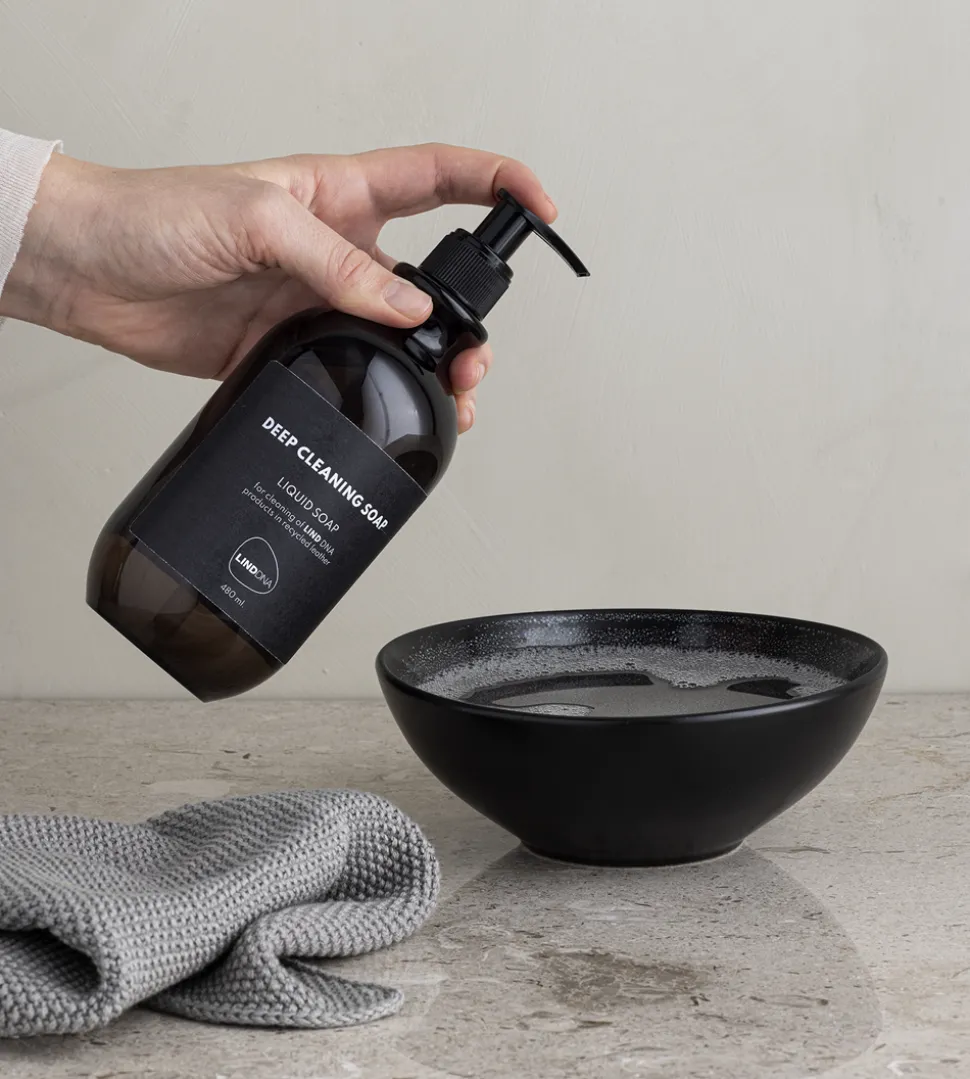 Deep Cleaning Sæbe fra Lind DNA er den ideelle løsning til at opretholde dine Lind DNA dækkeservietter og glasbrikker i perfekt stand. Denne flydende sæbe er praktisk udstyret med en pumpefunktion, der gør det nemt at dosere den rette mængde hver gang. Den er specielt formuleret til at udføre en grundig dybderengøring, hvilket sikrer, at dine produkter forbliver som nye.Denne sæbe er særlig velegnet til rengøring af produkter lavet af genanvendt læder, og dens effektive formel sikrer, at materialet forbliver intakt og velplejet. Med en generøs størrelse på 480 ml har du nok sæbe til mange rengøringer, hvilket gør det til en økonomisk og bæredygtig løsning til dine rengøringsbehov. Den nøje udviklede sammensætning af Deep Cleaning Sæbe fra Lind DNA gør den til et uundværligt middel i vedligeholdelsen af dine eksklusive læderprodukter.