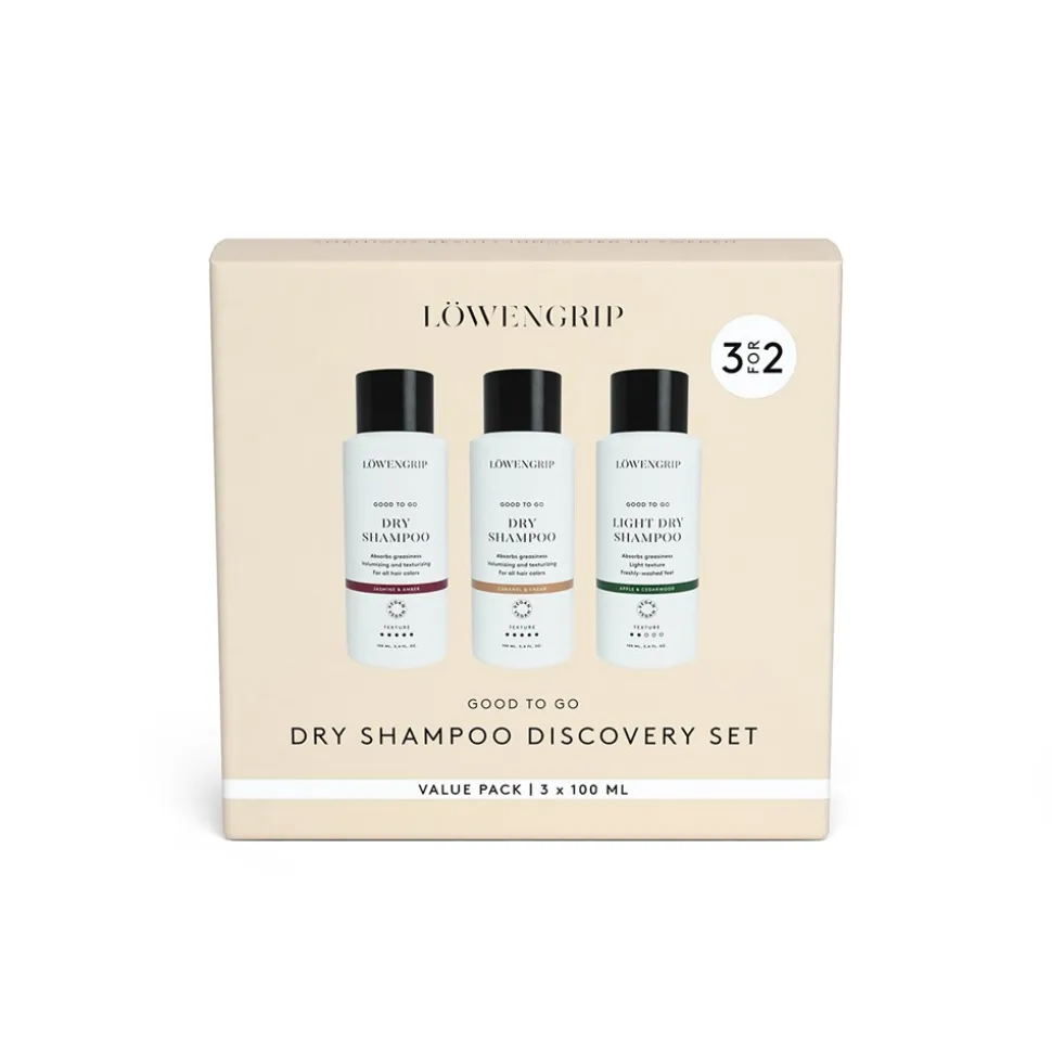 Oplev Löwengrips prisvindende tørshampooer, som frisker håret op mellem hårvaske. For ekstra volumen og tekstur, vælg Good To Go – Dry Shampoo med den sofistikerede duft af Jasmine & Amber eller bestselleren Caramel & Cream. Foretrækker du en lettere tekstur? Prøv Good To Go – Light Dry Shampoo med en frisk duft af Apple & Cedarwood. Ryst godt og spray ved hårrødderne. Passer til alle hårfarver