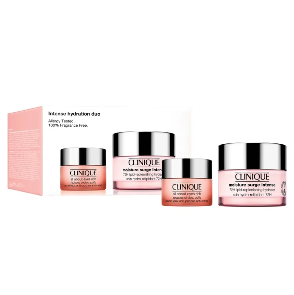 Forkæl en særlig kvinde i dit liv med Clinique’s Intense Hydration Duo Gaveæske, som er en perfekt kombination af pleje og luksus. Denne smukke gaveæske indeholder to af Cliniques mest populære produkter, der sammen sørger for optimal hydrering og pleje af huden.Først er der Moisture Surge Intense 72H Lipid-Replenishing Hydrator i en 50 ml størrelse, ideel til dem, der har brug for intensiv fugt. Denne creme arbejder i op til 72 timer for at genoprette hudens fugtbalance, hvilket efterlader huden blød og fornyet. Derudover inkluderer gaveæsken All About Eyes Rich, en rig øjencreme på 15 ml, der hjælper med at reducere synligheden af mørke rande og poser under øjnene, mens den fugter og beskytter den sarte hud omkring øjnene.Denne gaveæske fra Clinique er den perfekte gaveidé til hende, der fortjener lidt ekstra selvforkælelse. Med kombinationen af intensive fugtighedscremer er det en gave, der plejer og forkæler, hvilket gør det til en ideel gave til enhver lejlighed. Giv hende den ultimative skønhedsoplevelse med Clinique’s eksklusive produkter.