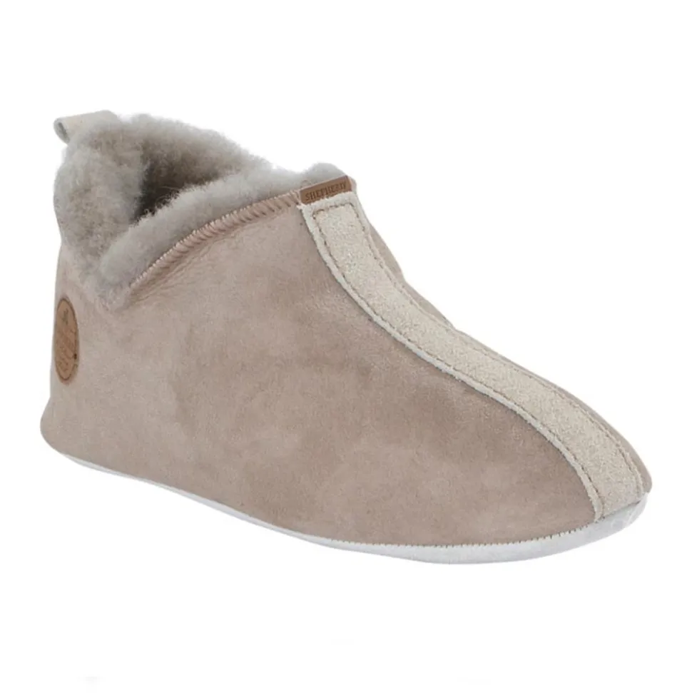 Varme og bløde hjemmesko i lysegrå. Hjemmeskoene er fremstillet med fåreuld indvendig samt ruskind udvendig. Ydermere er hjemmeskoene designet med en lav kant, der sikrer, at de både er nemme at få på samt sidder ordentlig fast.