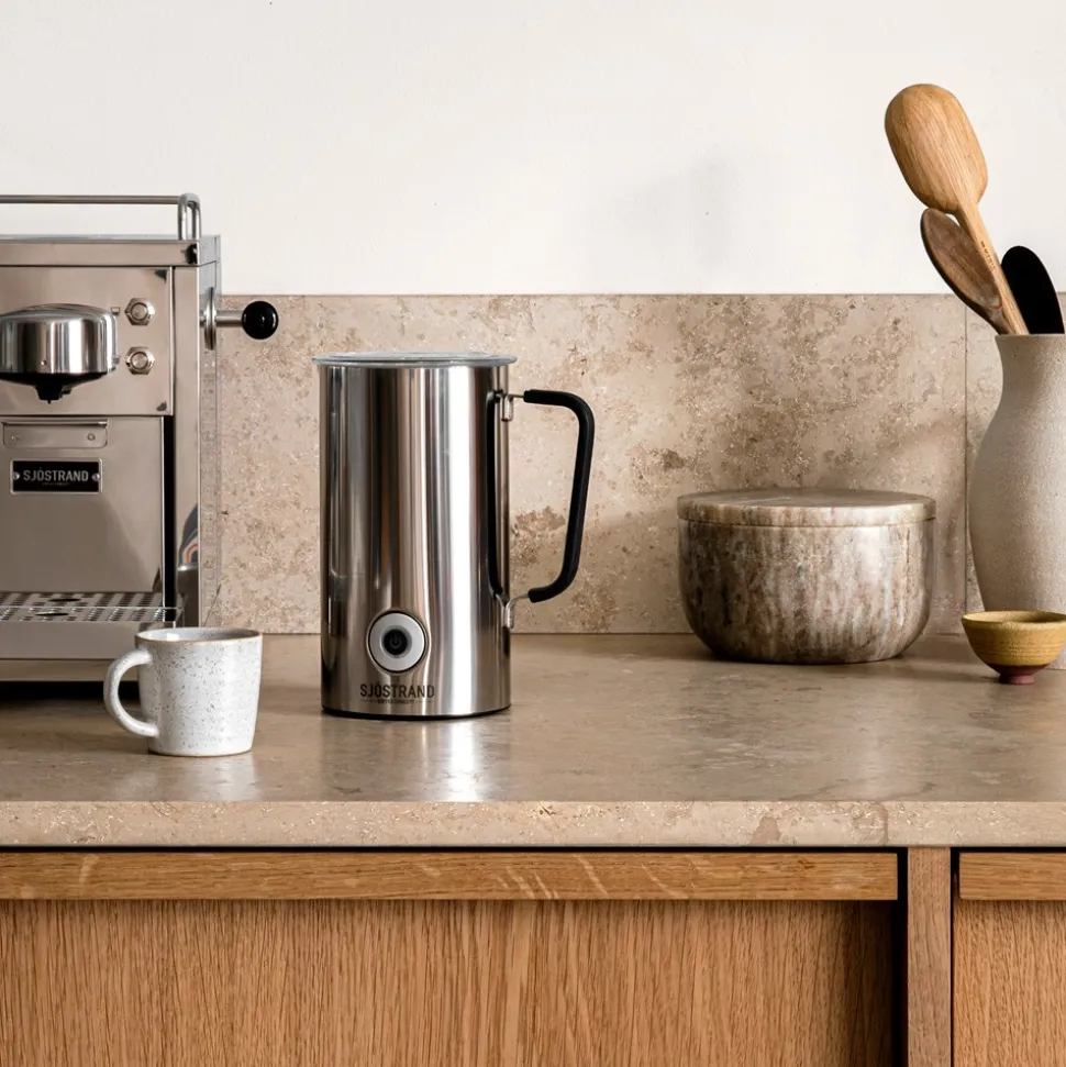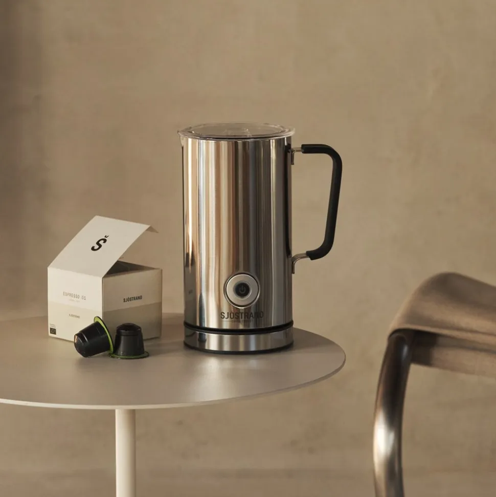 Oplev perfektion i hver kop med Sjöstrands mælkeskummer, der er skabt til at bringe barista-niveau oplevelser hjem i dit eget køkken. Denne mælkeskummer er ikke kun et stilfuldt supplement til din Sjöstrand The Original Kapselkaffemaskine, men også et alsidigt redskab, der forvandler hver drink til noget særligt. Den er designet med smart teknologi, der gør det muligt at skumme enhver type mælk eller mælkealternativ – perfekt til både varme og kolde drikke.Mælkeskummeren er fremstillet i rustfrit stål, hvilket sikrer lang holdbarhed og en moderne æstetik, der passer til et minimalistisk interiør. Med en praktisk hank og en ledningslængde på 66-68 cm er den nem at håndtere og placere. Den kompakte størrelse på H: 20 x Ø: 11 cm gør den let at opbevare, mens dens varmekapacitet på 300 ml og skumningskapacitet på 150 ml giver dig mulighed for at skabe den perfekte skum til din kaffe eller cappuccino. Lad Sjöstrands mælkeskummer bringe en ekstra dimension til din daglige kaffeoplevelse, uanset om du er til klassiske kaffeopskrifter eller kreative kaffekreationer.