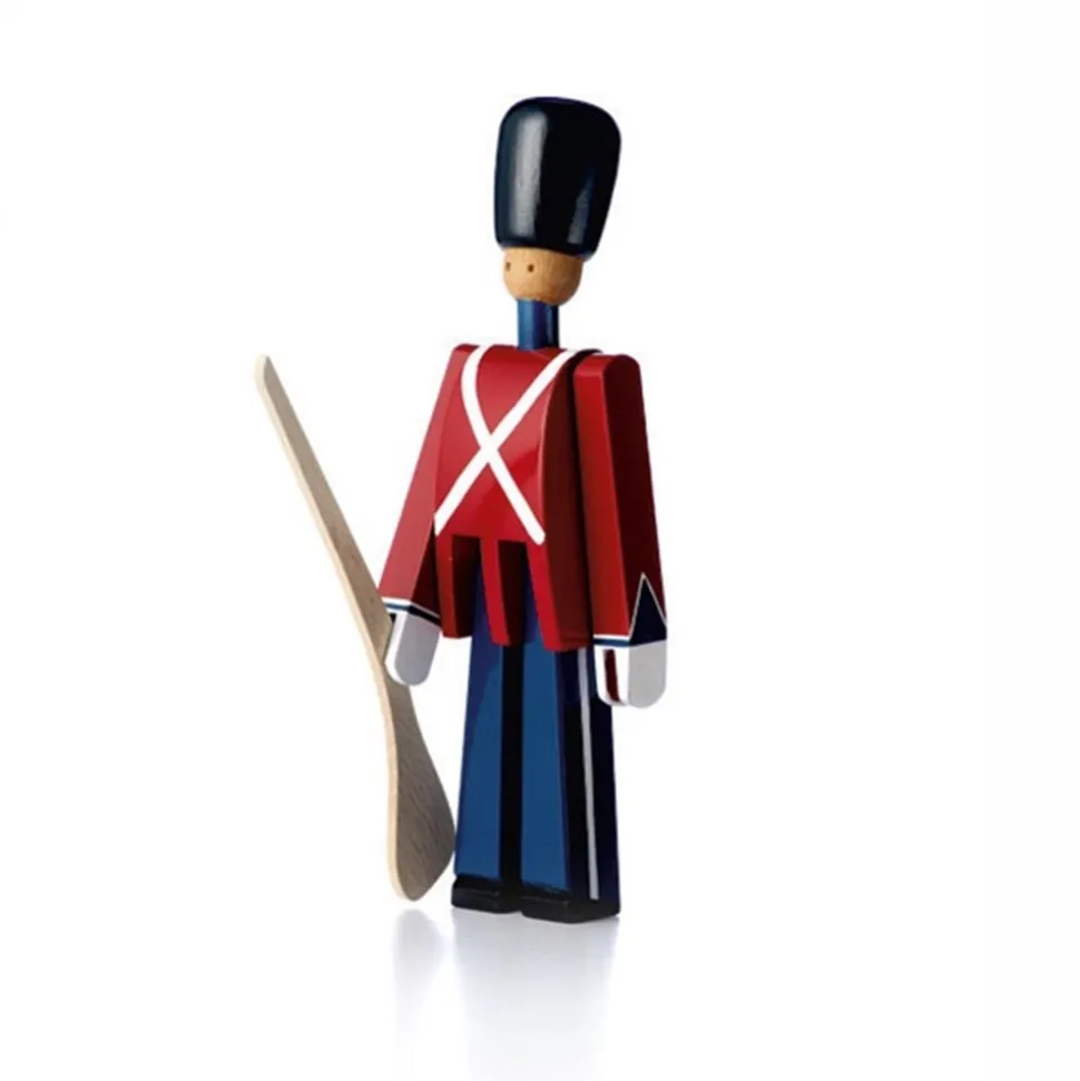 Menig Med Gevær fra Kay Bojesen er et smukt eksempel på dansk designtradition og håndværk. Denne figur er lavet i FSC®-certificeret bøgetræ, der er håndmalet for at give den et unikt og autentisk udseende. Den tidløse designklassiker er inspireret af de statelige gardere, som står vagt ved Amalienborg Slotsplads og er en hyldest til dansk kulturarv. Figuren er udstyret med bevægelige arme, hvilket gør den både sjov og alsidig i sin præsentation. Med en kompakt størrelse på 22,5 cm i højden, 5 cm i dybden og 7 cm i bredden, passer den perfekt ind i ethvert hjem som en del af din indretning. Vær dog opmærksom på, at figuren ikke tåler direkte sollys, da det kan påvirke dens smukke farver. Menig Med Gevær fra Kay Bojesen er ikke blot en dekoration, men en historiefortællende genstand, der bringer charme og elegance til dit hjem.