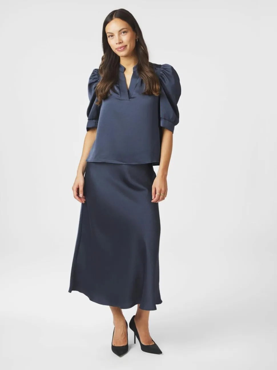 Fayla Drapy Satin Balloon Bukser, Black, 38