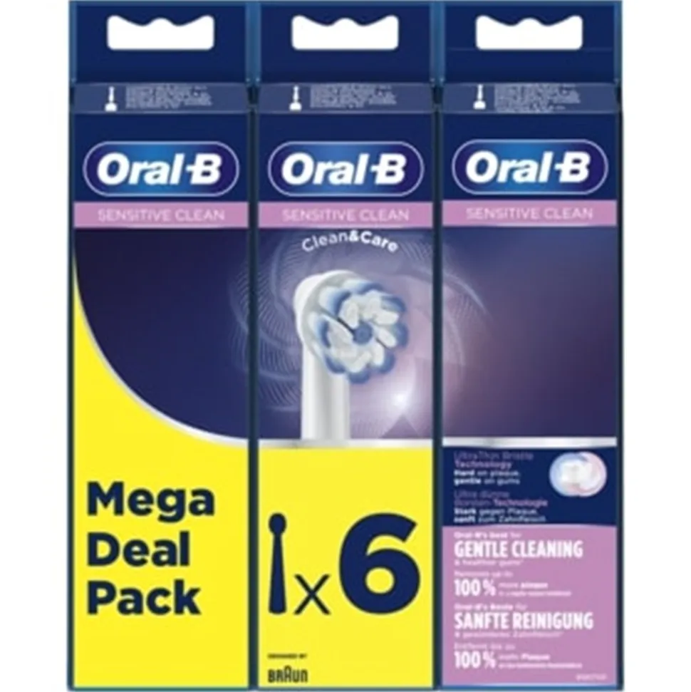 Oral-B Sensitive Clean børstehoved. Som et af Oral-B’s premium børstehoveder har ultratynde Sensitive Clean-børstehår, der er skånsomme mod tandkødet, kombineret med normale børster, der er hårde mod plak. Sensei Clean fjerner op til 100% mere plak og reducerer tandkødsbetændelse med 100% sammenlignet med en almindelig tandbørste. Den unikke kombination af afrundede og ultratynde børster gør Sensi Clean ideel til alle med følsom mund og alle, der bare er på udkig efter en god, blid rengøring. Kan bruges med alle Oral-B-håndtag undtagen Pulsonic & iO.