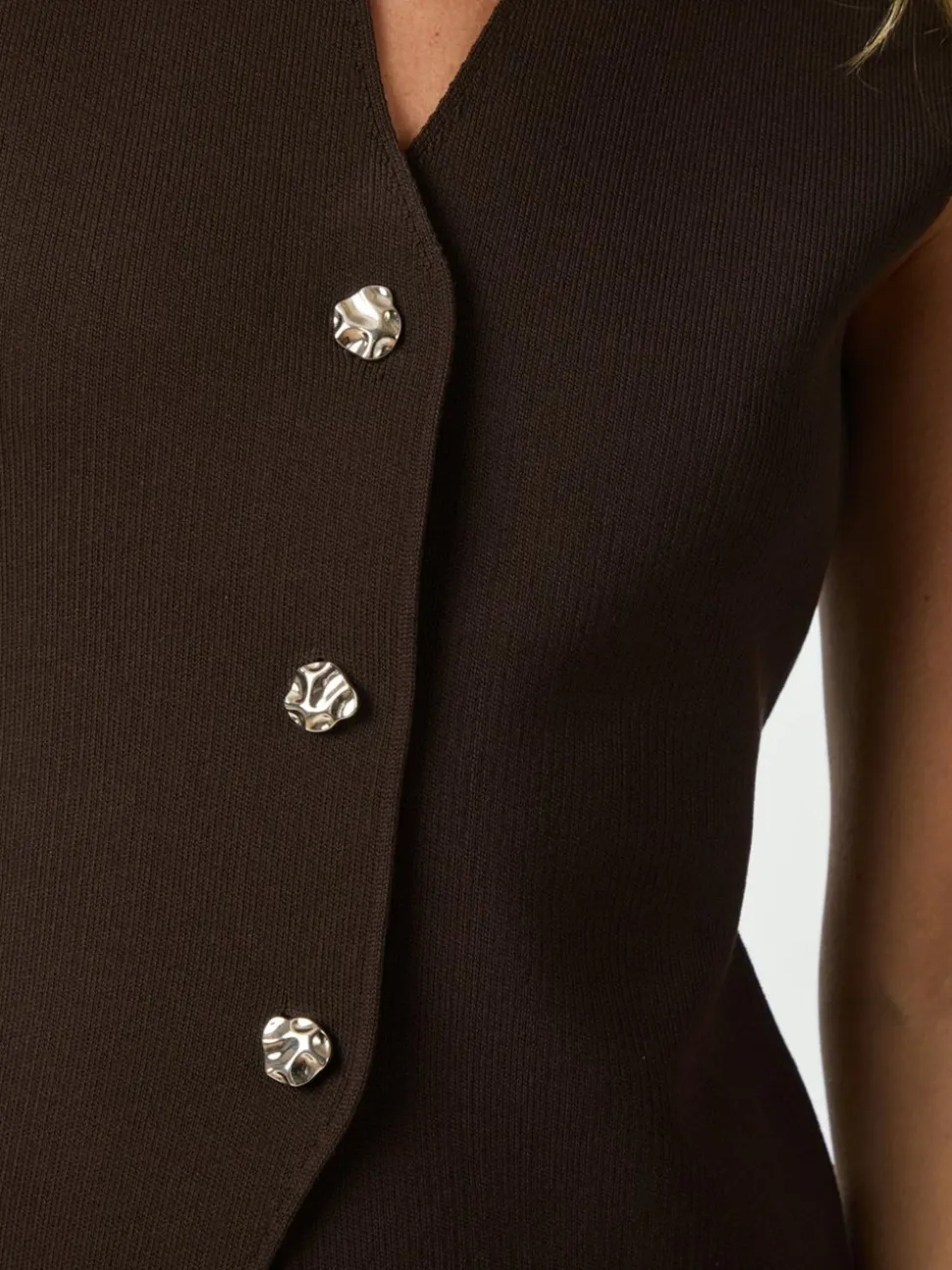 Denne elegante Sway Smooth Knit Vest, kombinerer stil og komfort på fineste vis. Denne vest er designet med en sofistikeret V-udskæring, der fremhæver ethvert outfit med sin tidløse charme. Med en praktisk knaplukning bliver det let at tage vesten af og på, mens de guldfarvede knapper tilføjer et strejf af elegance og luksus til looket. Vesten er figursyet, hvilket sikrer en flatterende pasform. Dette design er ideelt til både hverdagsbrug og mere formelle anledninger, hvor du ønsker at tilføje et stilfuldt element til din garderobe. Neo Noir har med denne vest skabt et alsidigt stykke tøj, der kan kombineres med forskellige outfits for et unikt og personligt look. Uanset om du styler den med en bluse eller en enkel t-shirt, vil denne vest være en uundværlig del af dit klædeskab.