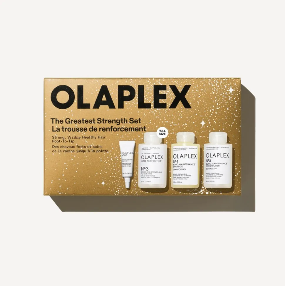 Oplev skønheden i sundt og stærkt hår med The Greatest Strength Gaveæske fra Olaplex. Denne gaveæske er den perfekte løsning til dem, der ønsker at revitalisere og styrke deres hår. Sættet indeholder No.3 Hair Perfector, en 100 ml behandling designet til at reparere og styrke håret i dybden, så det føles glattere og ser mere glansfuldt ud. Den efterfølges af No.4 Bond Maintenance™ Shampoo, også i 100 ml, der nænsomt renser håret samtidig med at det genopbygger og beskytter hårets struktur.For at fuldende din hårplejerutine inkluderer sættet No.5 Bond Maintenance™ Conditioner på 100 ml, som tilfører intens fugt og efterlader håret silkeblødt. Som en ekstra bonus får du også en No.0.5 Scalp Longevity Treatment på 5 ml, der fokuserer på at styrke hovedbunden, hvilket er fundamentet for sundt hårvækst.Denne gaveæske fra Olaplex er ideel som en gave til hende, der fortjener lidt ekstra forkælelse og ønsker sundt og stærkt hår. Uanset om det er til en speciel lejlighed eller bare for at vise, at du tænker på hende, er denne pakke det ultimative valg for hårplejeentusiaster.