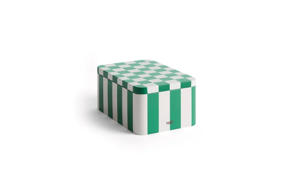 Tin Dåse fra HAY er en stilfuld og praktisk opbevaringsløsning, der kombinerer moderne design med funktionalitet. Denne firkantede dåse er fremstillet af tinplate, hvilket giver den en holdbar og robust kvalitet. Designet er 2-farvet og prydet med et elegant ternet mønster i grøn og off-white, der vil bringe et friskt pust til enhver indretning. Dåsen er udformet med afrundede hjørner, der tilføjer en blødere æstetik og gør den behagelig at håndtere. Den kompakte størrelse, small, med dimensionerne B: 17 x D: 11,1 x H: 7,3 cm, gør den ideel til opbevaring af små genstande på kontoret, i køkkenet eller på badeværelset. Tin Dåse fra HAY er ikke blot en praktisk opbevaringsløsning, men også en dekorativ tilføjelse til dit hjem.