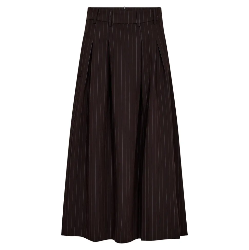 Denne nederdel kombinerer maxi-længde med et moderne design, der gør den til et must-have i enhver garderobe. De smalle striber giver et raffineret udseende, som kan bæres både til hverdag og særlige lejligheder, mens plisseringerne tilføjer en dynamisk bevægelse og tekstur til dit look. Nederdelen er udstyret med praktiske lommer i siden, hvilket giver både stil og funktionalitet. Bæltestropperne giver dig mulighed for at tilføje dit yndlingsbælte, så du kan tilpasse pasformen, som du ønsker. Lynlåslukningen bagpå sikrer en nem og sikker lukning. TrinnyCC Pleat Stripe Nederdel fra Co’Couture er en perfekt kombination af komfort og elegance, og et alsidigt valg, der nemt kan styles til både afslappede og formelle anledninger.