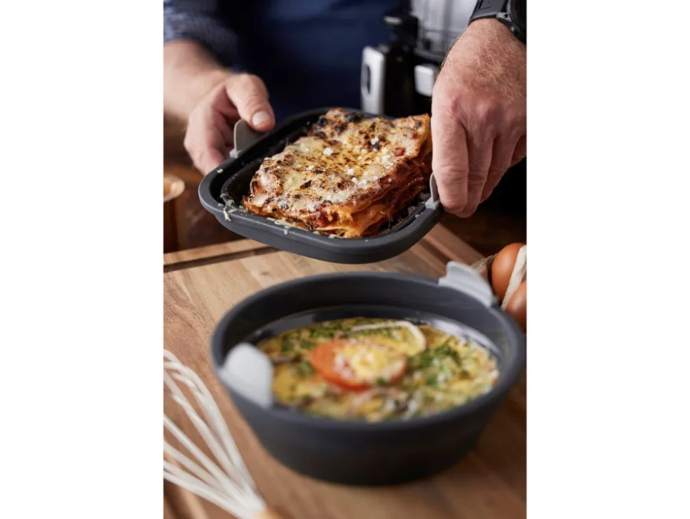 AirFryer Form fra HOLM er det ideelle tilbehør til din airfryer, designet til at gøre din madlavningsoplevelse endnu bedre. Denne form er lavet i silikone, hvilket sikrer fleksibilitet og holdbarhed, samtidig med at den er nem at håndtere. Med en rund form og en størrelse på 19×6 cm passer den perfekt ind i de fleste airfryere og sikrer en jævn varmefordeling.Det unikke design af AirFryer Form fra HOLM hjælper med at undgå klistrede og forbrændte madrester, hvilket gør rengøringen betydeligt lettere. Silikonen gør formen nem at vaske, og den kan endda tåle en tur i opvaskemaskinen, hvilket sparer dig tid og besvær. For ekstra bekvemmelighed kan formen foldes sammen, så den optager minimal plads i køkkenskabet. Den er også varmebestandig og kan tåle op til 220 grader i ovnen, hvilket gør den alsidig til både airfrying og andre madlavningsmetoder. Med AirFryer Form fra HOLM får du et praktisk og funktionelt køkkenredskab, der gør madlavningen nemmere og mere effektiv.