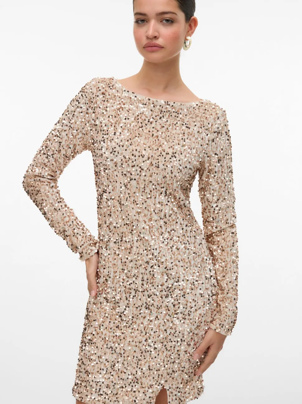 Oplev elegance og stil med Vero Modas Bella Kort Kjole, der er det perfekte valg til enhver festlig lejlighed. Denne kjole er designet af Vero Moda og er kendetegnet ved sin moderne mini-længde, der giver et ungdommeligt udtryk, perfekt til at vise dine ben frem. Med en smuk bådudskæring fremhæver den din hals og skuldre på en feminin måde, der tilføjer et sofistikeret touch til dit look. Kjolen er udstyret med lange ærmer, som gør den ideel til både køligere aftener og mere formelle begivenheder. Den slim fit pasform fremhæver dine kurver og giver en flatterende silhuet, der gør dig til festens midtpunkt. Bella Kort Kjole er prydet med glitrende pailletter, der fanger lyset fra alle vinkler og sikrer, at du stråler på dansegulvet. Hvis du ønsker at skille dig ud med stil og elegance, er denne kjole det perfekte valg til din næste fest.