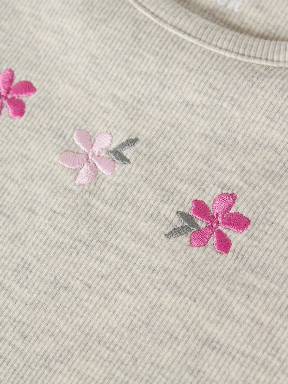 - Broderede blomster henover brystet