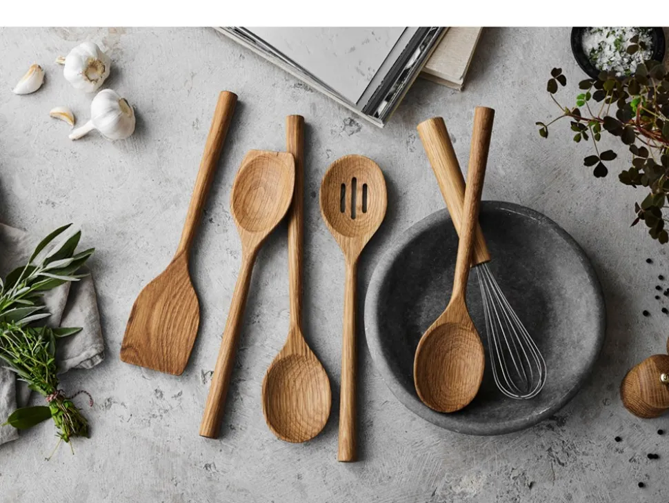 Douron Grydeske fra Pillivuyt Gourmet er et elegant og funktionelt valg til dit køkkenudstyr. Den klassiske, runde grydeske er designet til at være skånsom mod dine gryder og pander, hvilket gør den ideel til daglig madlavning. Det er vigtigt at bemærke, at denne grydeske er lavet af FSC®-certificeret olieret egetræ, og med dimensionerne 30,5 x 7,1 x 1,9 cm passer grydeskeen perfekt i hånden og er let at håndtere, hvilket gør den til en uundværlig del af dit køkkenudstyr. Det funktionelle design sikrer, at du kan røre og vende maden effektivt. Husk, at Douron Grydeske ikke tåler opvaskemaskine, så håndvask anbefales for at bevare dens smukke finish og holdbarhed. Denne grydeske fra Pillivuyt Gourmet er et perfekt valg for dem, der værdsætter kvalitet og traditionelt håndværk i deres køkkenudstyr.