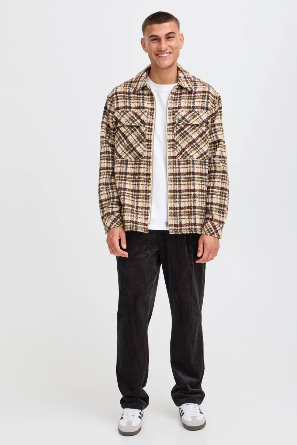 Lade Overshirt fra Solid præsenterer en ideel blanding af stil og funktionalitet, der passer perfekt ind i enhver garderobe. Denne overshirt er designet til dem, der værdsætter både mode og komfort. Med sin praktiske lynlåslukning er det nemt at tage den af og på, hvilket gør den til et bekvemt valg for enhver lejlighed. De to brystlommer med klap og to knapper tilbyder ikke kun en ekstra dimension af stil, men også praktisk opbevaring til mindre genstande, som du ønsker at have lige ved hånden.Det ternede mønster giver overshirten et tidløst og klassisk udseende, der kan komplimentere mange forskellige stilarter. Den er skabt med en box fit, hvilket betyder, at den har en afslappet pasform, der sikrer bevægelsesfrihed og komfort hele dagen. Materialet i polyester gør den slidstærk og let at vedligeholde, hvilket er et stort plus for dem, der ønsker et stilfuldt, men også praktisk valg. Lade Overshirt fra Solid er den perfekte tilføjelse til enhver garderobe, der søger alsidighed og stil.
