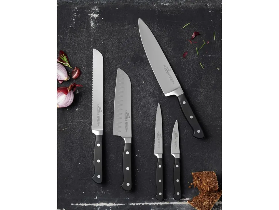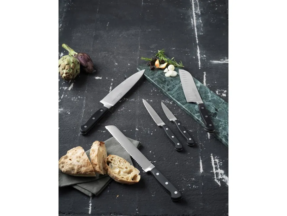 - Kokkekniv, brødkniv, santokukniv, tomatkniv og urtekniv
