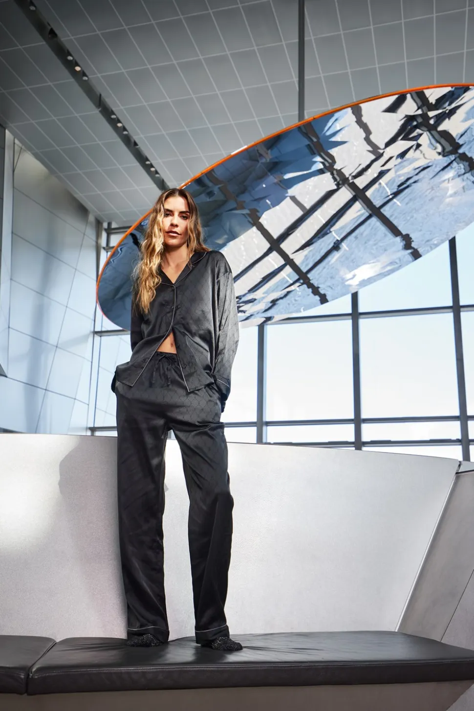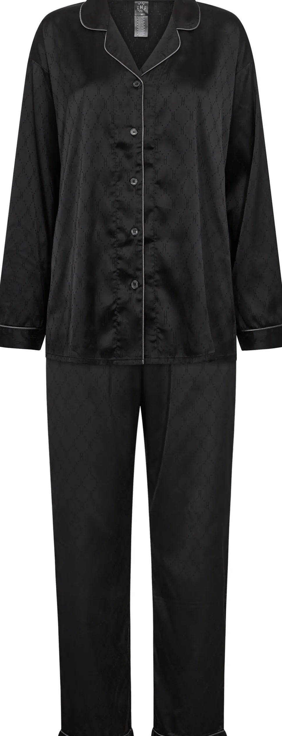 Oplev ultimativ komfort og stil med dette Satin Pyjamassæt fra Hype The Detail. Dette elegante sæt er perfekt til at tilføje et strejf af luksus til din afslapning derhjemme. Sættet inkluderer en langærmet skjorte, der sikrer både varme og bekvemmelighed, samt lange bukser, der fuldender den sofistikerede pyjamaslook.Pyjamassættet er designet med en klassisk skjortekrave og et regular fit, der giver en let og behagelig pasform, uanset om du slapper af om aftenen eller nyder en rolig morgen. Det iøjnefaldende diamantformede logomønster tilføjer en unik detalje, der skiller sig ud og fremhæver Hype The Details karakteristiske stil. Den luksuriøse satinlook føles blødt mod huden og giver en fornemmelse af velvære, mens du slapper af. Uanset om det er til dig selv eller som en gave til en du holder af, er dette pyjamassæt et oplagt valg for dem, der ønsker at kombinere komfort med en stilfuld elegance.