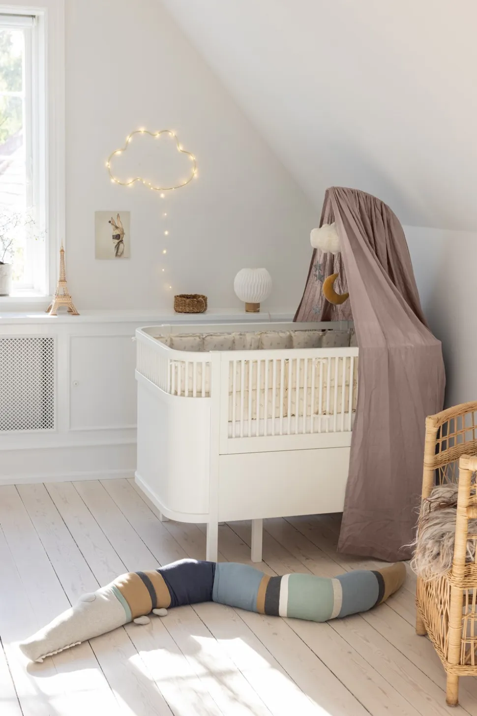 Sky Sengehimmel fra Sebra giver dit barn en beroligende og tryg oase i soveværelset. Det ensfarvede design passer perfekt ind i enhver indretning og skaber en harmonisk og rolig atmosfære. Med en let og luftig konstruktion sikrer denne sengehimmel en følelse af lethed, samtidig med at den tilbyder en beskyttende omfavnelse omkring barnets seng. Fremstillet i dobby-kvalitet, giver Sky Sengehimmel en struktureret og elegant tekstur, der tilføjer et touch af luksus til børneværelset. Den kan let integreres med en Sebra Uro-holder, hvilket giver mulighed for at tilføje ekstra visuel interesse og stimulere barnets sanser. Med en generøs størrelse på 150 x 200 cm passer denne sengehimmel perfekt til forskellige sengetyper, hvilket gør den til et alsidigt valg for enhver familie.