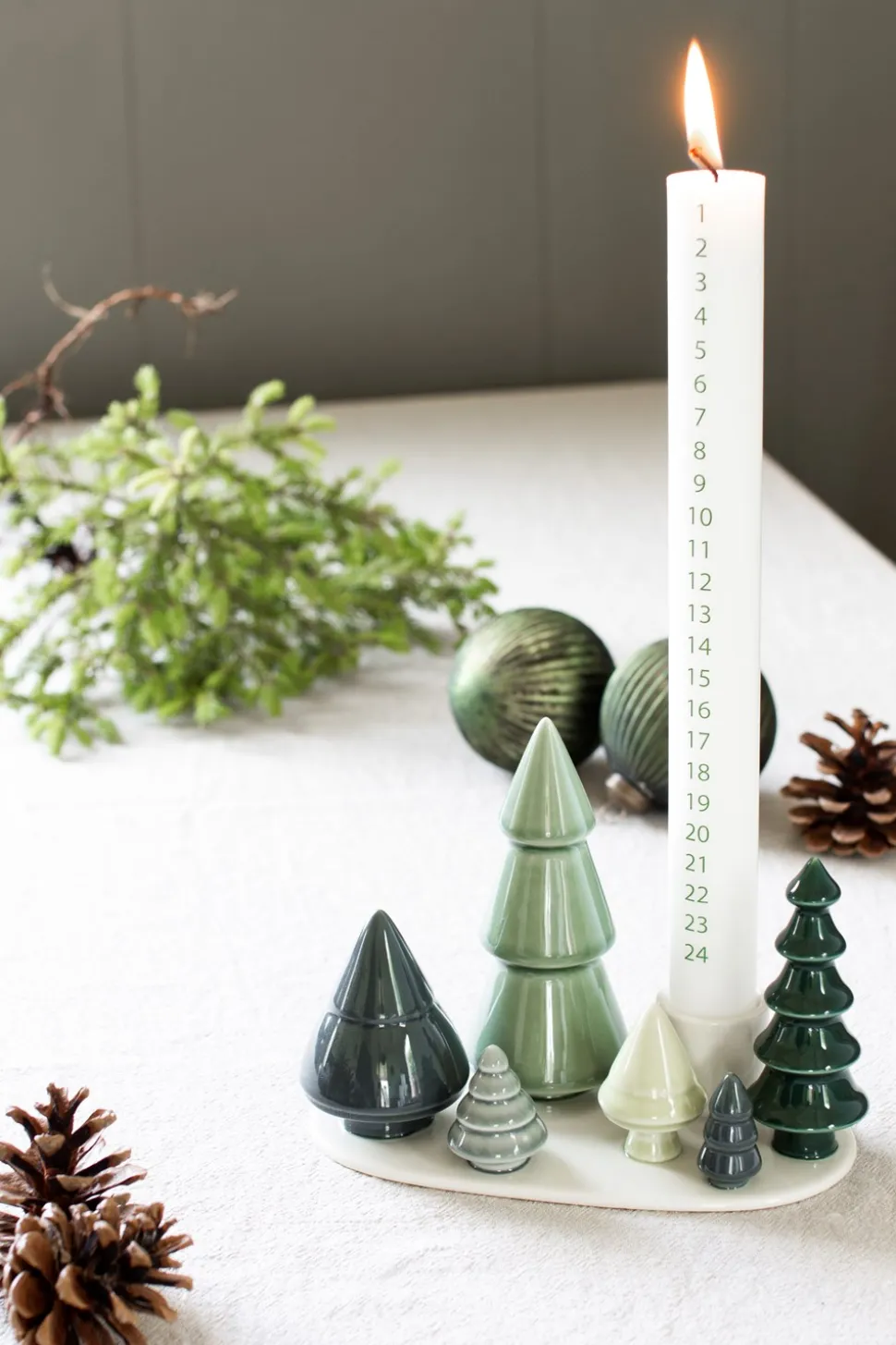 - Formet som grantræer omkring lyset